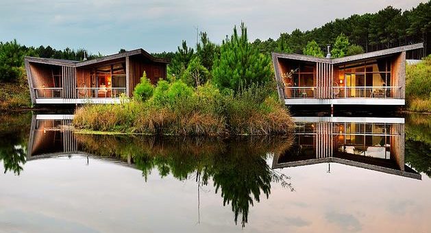 Les Échasses Golf & Surf Eco Lodge, à Saubion Au total, ce sont sept cabanes contemporaines (50 m2) posées sur l’eau et réservées aux couples et un lodge familial d’une centaine de mètres carrés,...