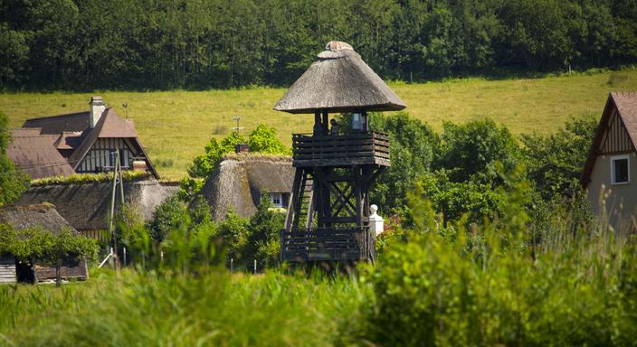 C’est un village à taille humaine qui se trouve dans un véritable marais dénommé lui aussi le Marais-Vernier. Pour ne pas vous y perdre, rendez-vous au village et admirer les maisons aux toits de chaume aux sommets desquels poussent des iris. Suivez ensuite la route des chaumières, une balade de plusieurs dizaines de kilomètres au cœur du marais, à faire en voiture mais aussi à vélo, accompagné d’un âne (gitedelanerie.fr) ou en calèche (Roulotte en Seine normande). Sur le chemin, vous croiserez de magnifiques vaches orange à poils longs venues du nord de l’Écosse et des chevaux camarguais, tous adaptés à l’atmosphère humide et bucolique du marais.