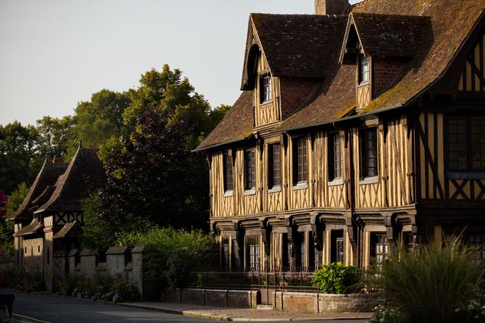 Classé parmi les plus beaux villages de France, Beuvron-en-Auge est un concentré de Normandie à lui tout seul. Ce bourg offre aux visiteurs un voyage dans le temps avec son manoir du XVIe siècle, sa place pavée où trône une halle centrale en colombages entourée de maisons du XVIIe et XVIIIe siècles restaurées. La plupart des commerces sont aujourd’hui des brocantes. On s’enfonce dans les petites ruelles attenantes à la grand-place sans déranger les habitants et on pense à lever la tête pour apprécier les détails des maisons à pans de bois.