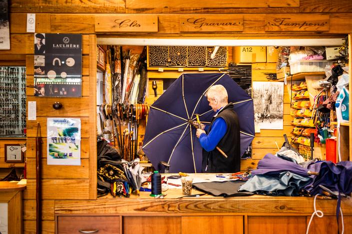 Au Parapluie des Pyrénées, la seule boutique en France à fabriquer les parapluies de bergers. 12, rue Montpensier, 64000 Pau. Tél. : 05 59 27 53 66.