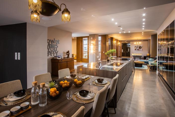 Aux portes du vieux-Lille, à La Madeleine, et à une heure des plages du Nord, ce loft au nom de Swimcasalille est un bon compromis entre la sophistication et le luxe des grands espaces. Sur 400 m2, et autour d’un patio intérieur s’articulent une piscine chauffée à 30 degrés, un sauna, une salle de gym, home cinéma, billard, baby foot, ping pong… Et cinq chambres avec salles de bains. L’architecture alterne les volumes décloisonnés, les différents niveaux et les espaces cosy, ce qui permet de s’isoler facilement. Pour les amateurs, la cuisine équipée en enfilade est un must du genre, sans rien perdre du fil des conversations.
