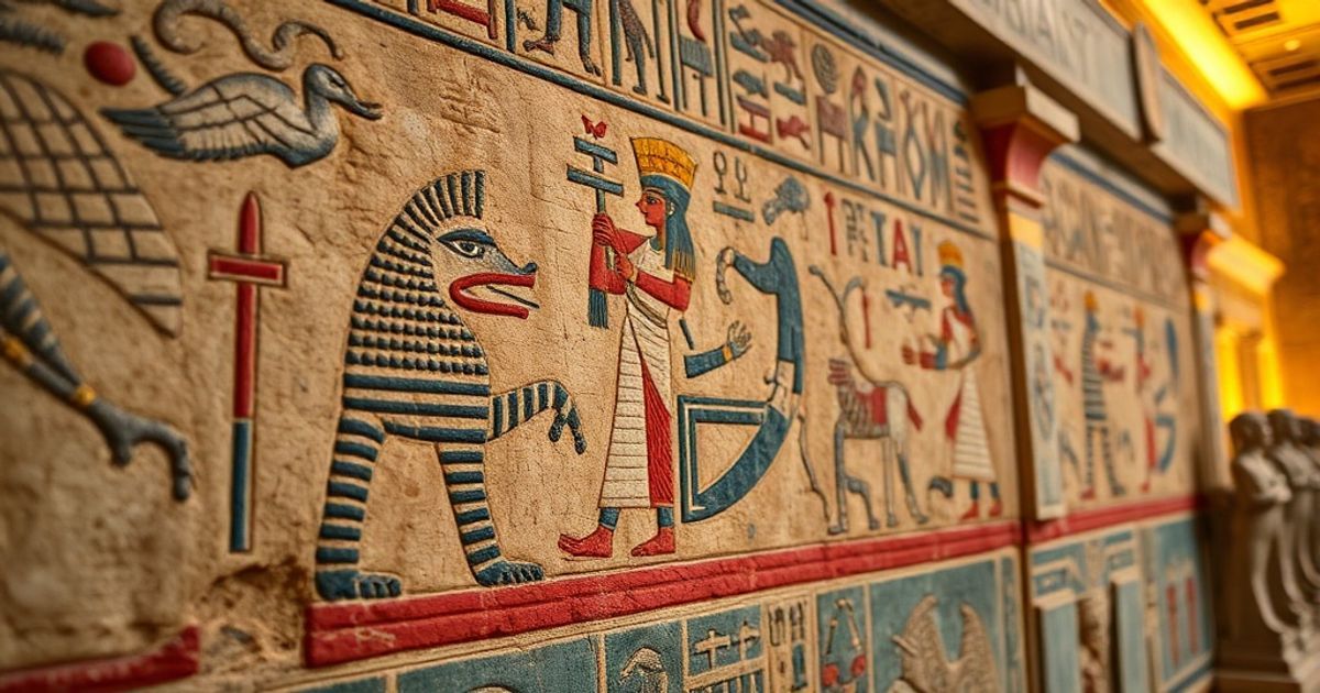 – Déchiffrage des hiéroglyphes et explication des scènes mythologiques