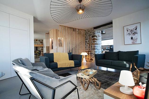 Située dans l’ancien presbytère du village d’Aubrac, cette maison de basalte et de granit offre un panorama splendide sur les vastes prairies d’estive de l’Aubrac. Devant un tel décor, inutile d’en rajouter. Geneviève et Jean-Louis ont opté pour une décoration épurée, sans prétention. Béton ciré, claustra en chêne, pierre apparente… La salle à manger permet de jouir du paysage sur 180°. Seulement deux chambres: la maison reste intime. Vivante aussi, car nos adorables hôtes ouvrent un petit bar en été pour rafraîchir les pèlerins de Compostelle (le chemin de Saint-Jacques passe juste devant). Ils fourmillent aussi de bons conseils pour randonner par les drailles (sentiers) d’Aubrac. Table d’hôtes (25 €).